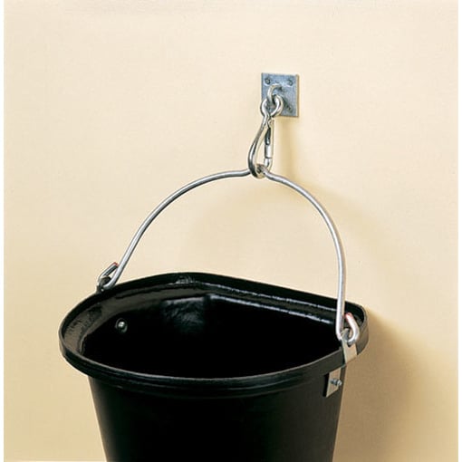 Balde robusto em estilo americano, feito de plástico altamente resistente. Pode ser equipado com o anel metálico anti-perda S44AWR (vendido separadamente). Pode ser fixado em um canto do estábulo usando o mosquetão STUBBS S85PS com placa (não incluído).