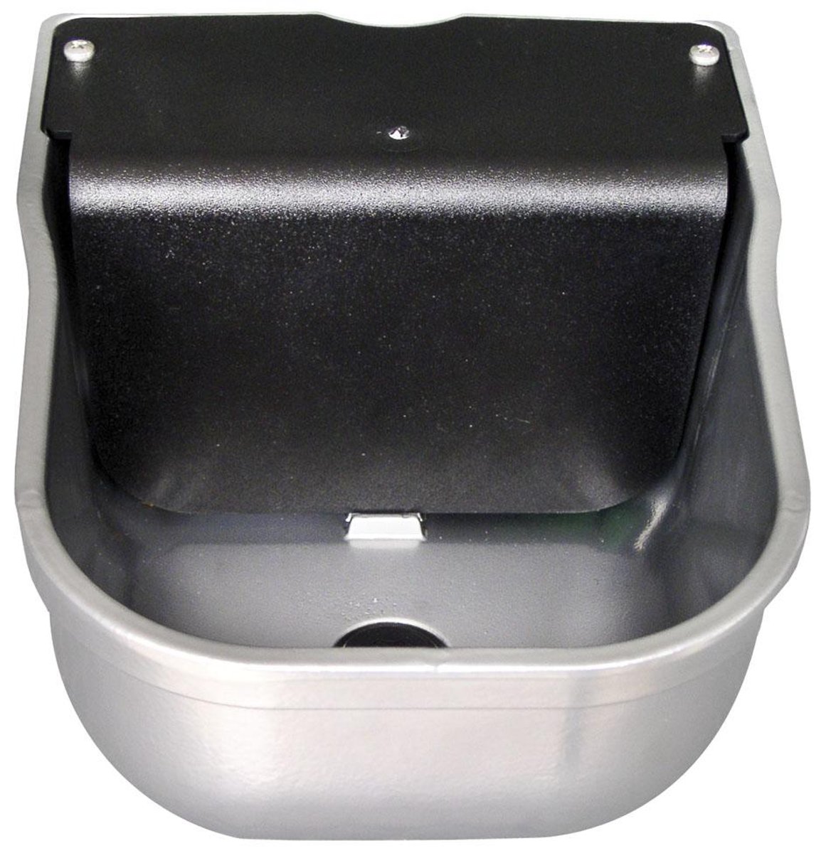 Bebedouro de alumínio. Adequado para todos os tipos de animais, mas especialmente para bovinos e equinos. Consiste em uma bacia de alumínio fundido pintado e um protetor de flutuador em ABS de alta resistência. Possui dois pontos de fixação, permitindo a instalação em um cano com braçadeira ou na parede. A entrada de água está localizada na parte inferior, com uma vazão de 12 litros por minuto a 4 bar, ajustável sem a necessidade de desmontar a válvula. Graças ao seu dreno, este bebedouro é mais fácil de limpar. Suas dimensões são 300 x 260 x 130 mm sem a braçadeira.