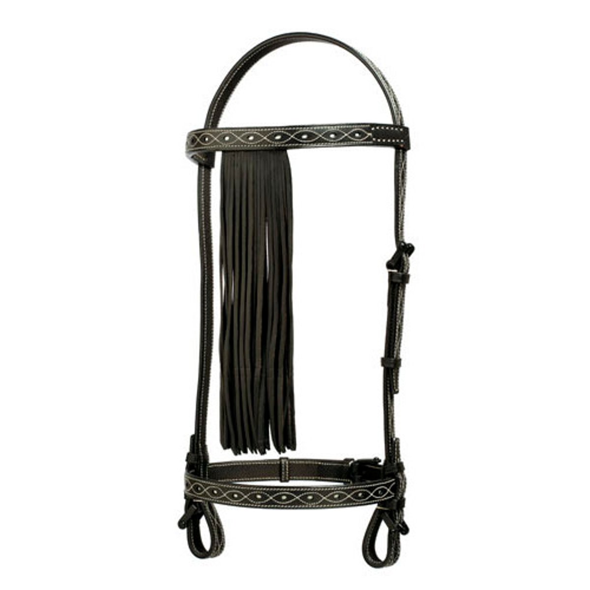 Cabeçada à espanhola gravada com filigrana com rédeas em couro.