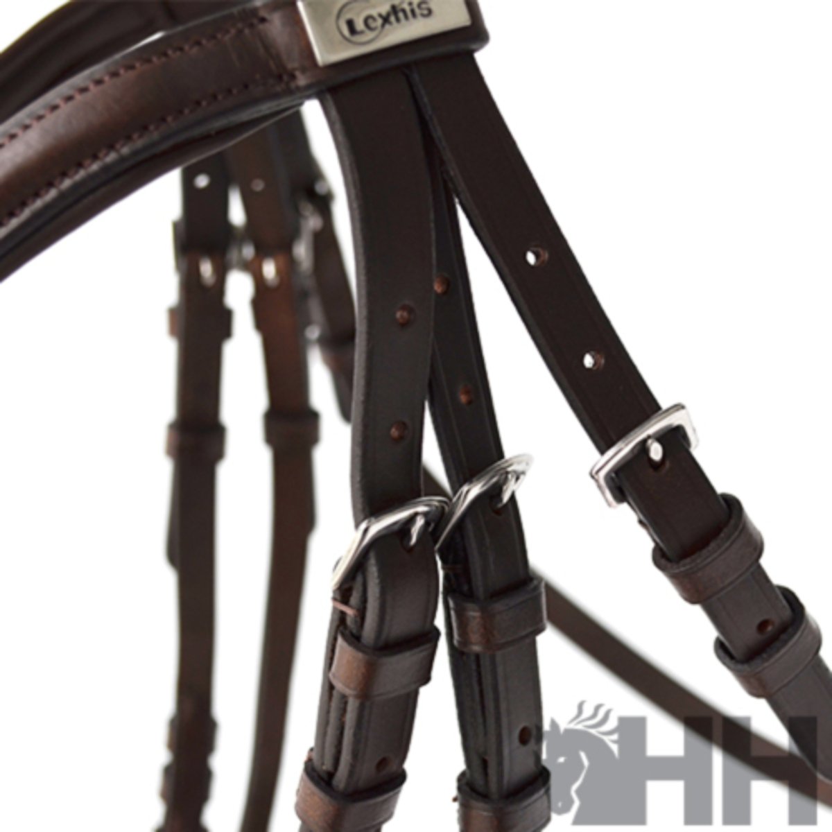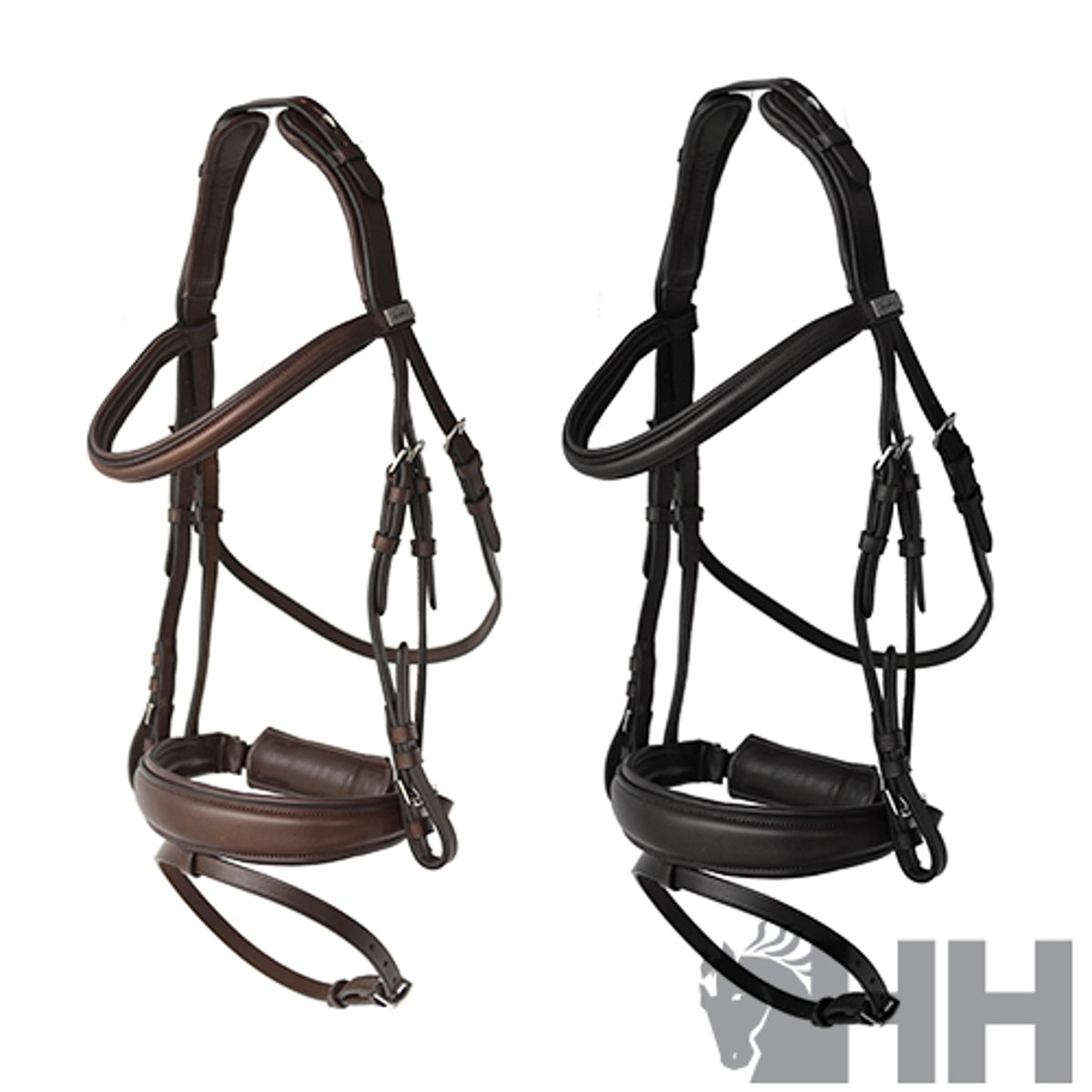 Cabeçada com cabeçada ajustável em diversas posições para melhor adaptação ao tamanho da cabeça do cavalo. Focinheira larga com bocal. Feito de couro premium.
