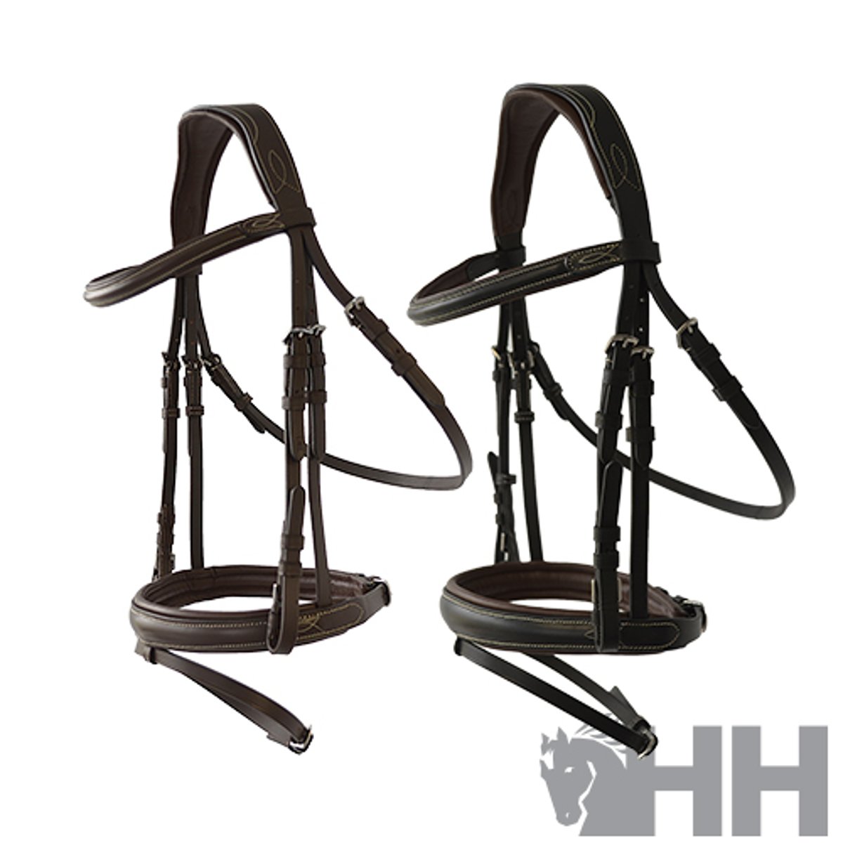 Cabeçada feita de couro macio e durável. Cabeçada larga e anatômica para um ajuste perfeito ao pescoço do cavalo sem causar pressão excessiva. Focinheira larga com bocal. Elegantes enfeites costurados na cabeçada, testa e focinheira.