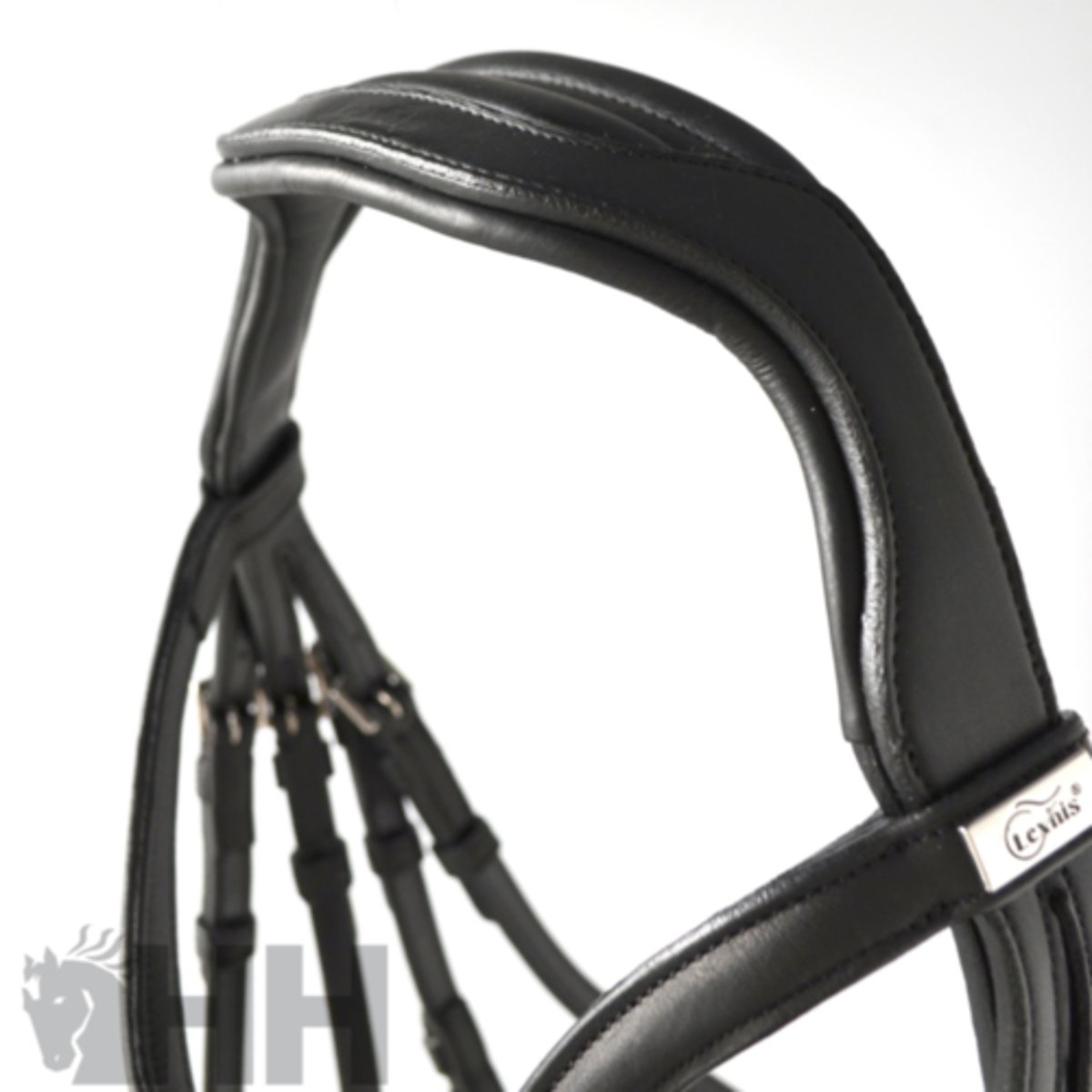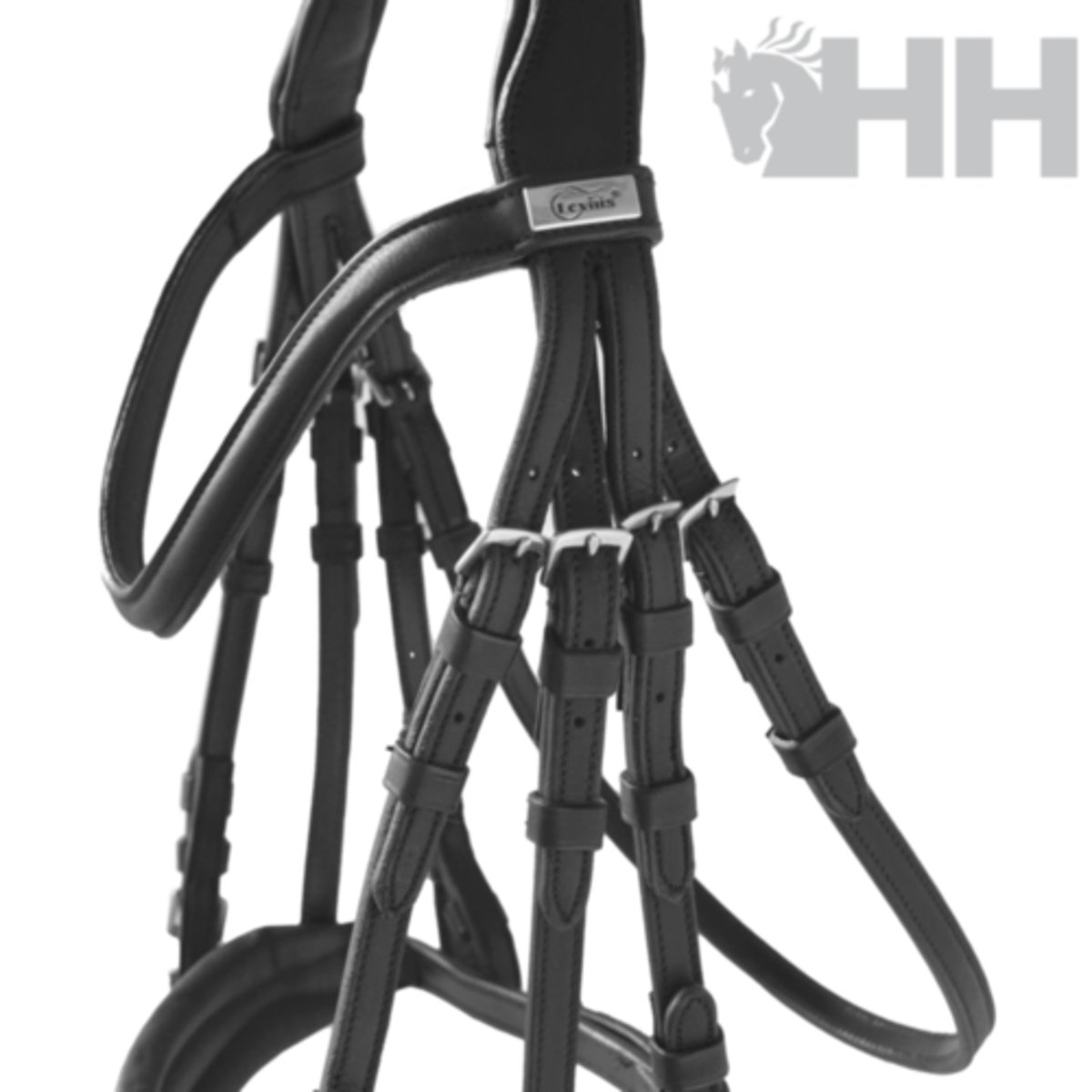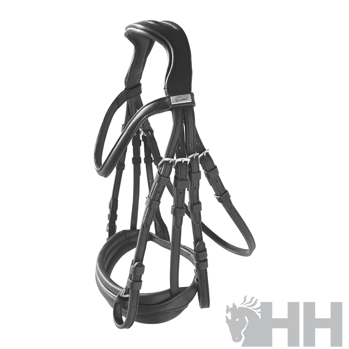 Cabeçada feita de couro de alta qualidade, duplamente oleado, com fivelas de aço inoxidável. Cabeceira anatômica, bastante acolchoada e focinheira extra larga.