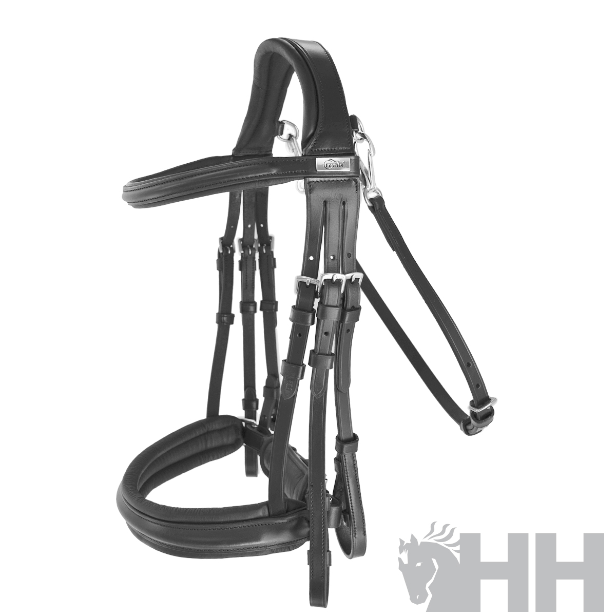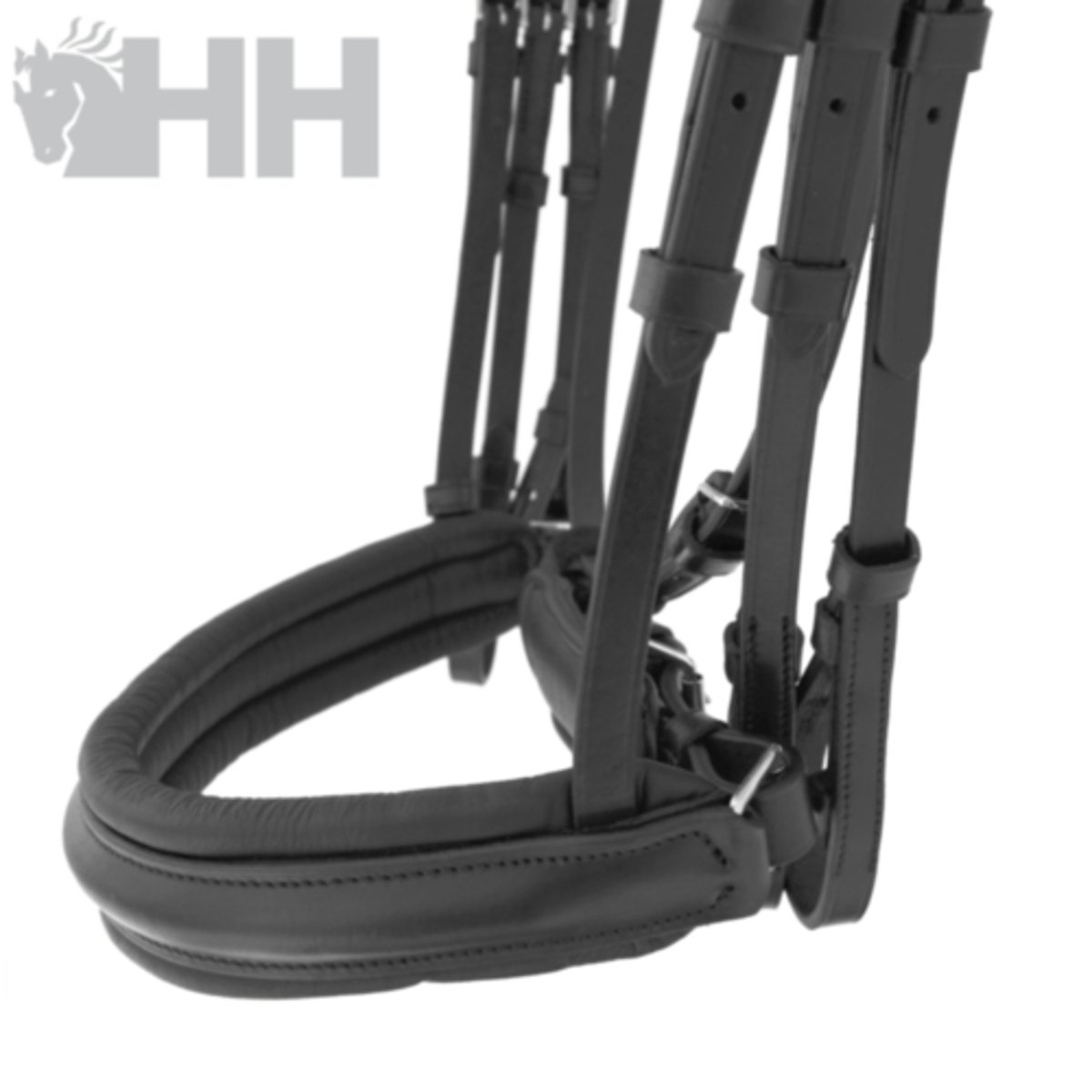 Cabeçada confeccionada em couro premium e fivelas de aço inoxidável.
