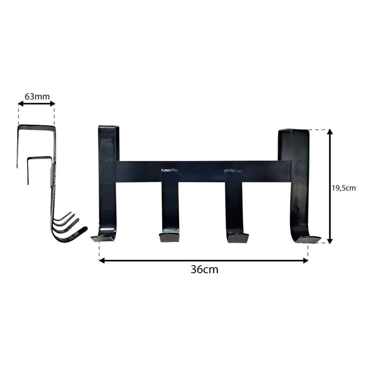 Suporte para cavalos com ganchos. Feito de metal preto. Suporte robusto com ganchos práticos para pendurar no estábulo. Possui 4 ganchos para pendurar cabeçadas, rédeas e outros acessórios de equitação. Comprimento: 36 cm