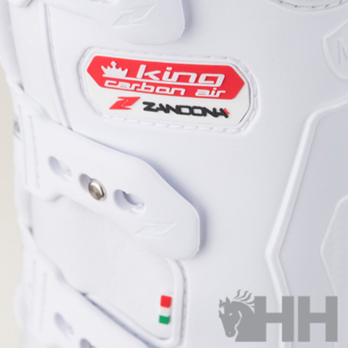 A fibra de carbono sob o casco protege as articulações do atrito externo e melhora a resistência ao impacto. Zona de Flexão Interna para liberdade de movimento. Possui tiras elásticas para um fechamento seguro e de liberação rápida. Ajuste perfeito ao membro do cavalo.