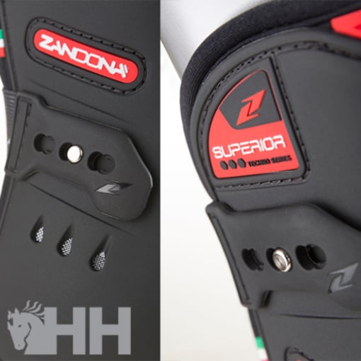 Estrutura externa em TPU. Respirável graças ao neoprene perfurado e aos seis orifícios de ventilação na parte inferior. Amortecedores Gel-Tech entre o neoprene e o TPU atuam como almofadas para maior conforto. Flex Zone interna para liberdade de movimentos. Possui tiras elásticas que fecham com segurança e podem ser liberadas rapidamente. Ajuste perfeito ao membro do cavalo.