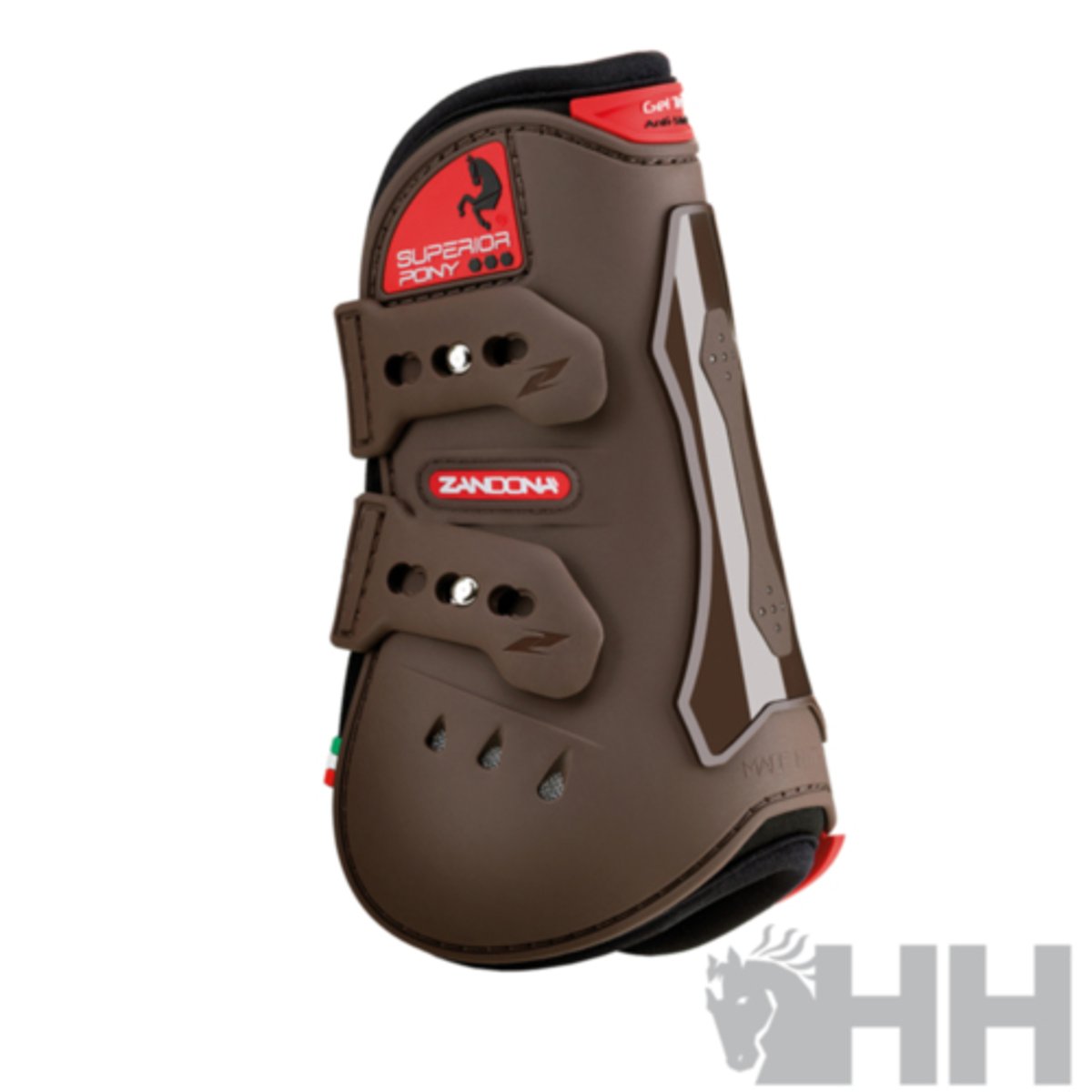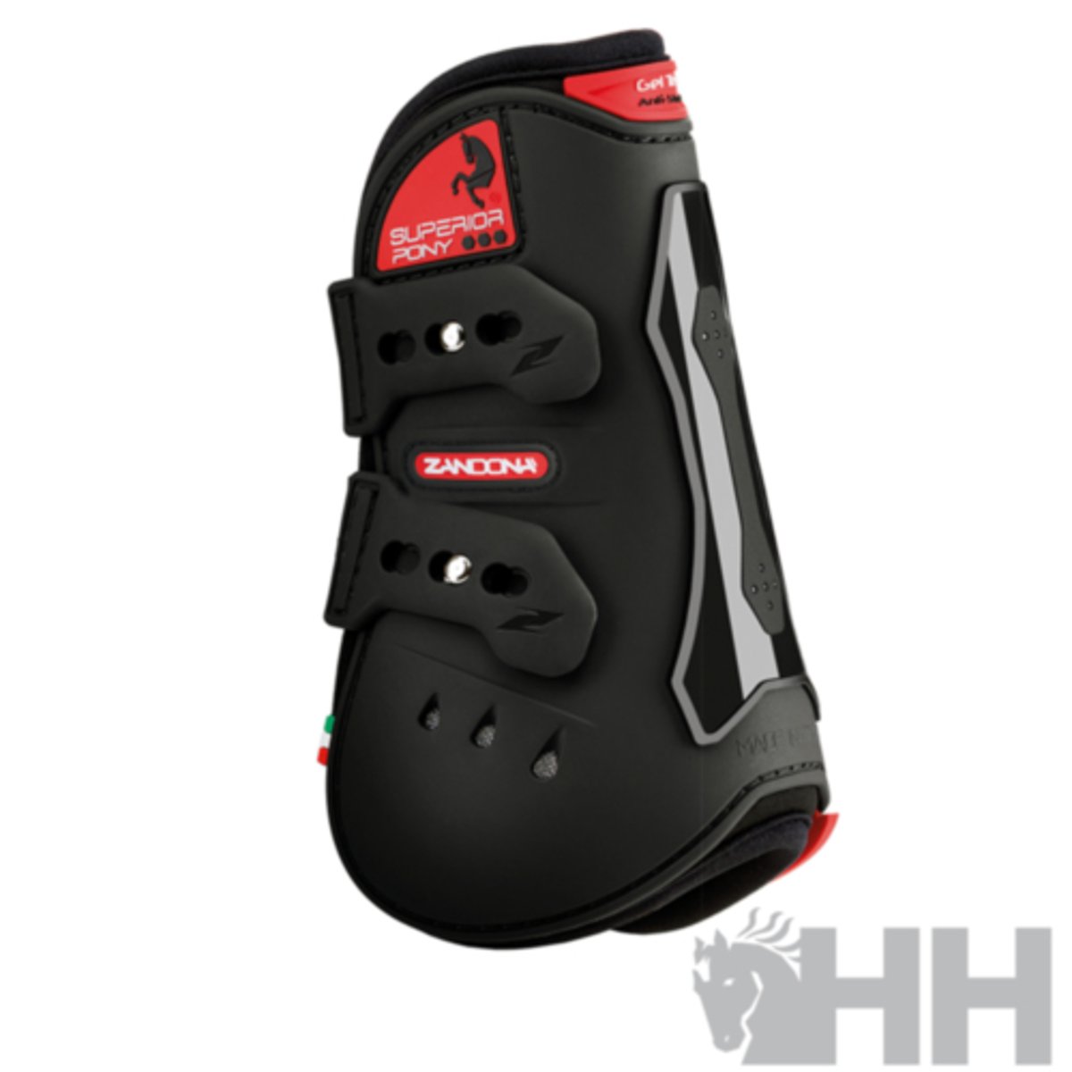 Estrutura externa em TPU. Respirável graças ao neoprene perfurado e aos seis orifícios de ventilação na parte inferior. Amortecedores Gel-Tech entre o neoprene e o TPU atuam como almofadas para maior conforto. Flex Zone interna para liberdade de movimentos. Possui tiras elásticas que fecham com segurança e podem ser liberadas rapidamente. Ajuste perfeito para o membro do pônei.
