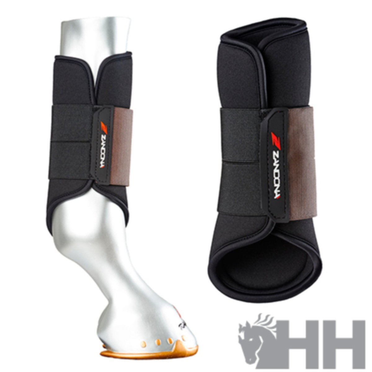 Revestimento externo em TPU. Respirável graças ao neoprene perfurado e aos três orifícios de ventilação na parte inferior. Amortecedores Gel-Tech entre o neoprene e o TPU atuam como almofadas para maior conforto. A fibra de carbono sob o revestimento protege as articulações do atrito externo e melhora a resistência ao impacto. Flex Zone interna para liberdade de movimento. Ajuste perfeito ao membro do cavalo.