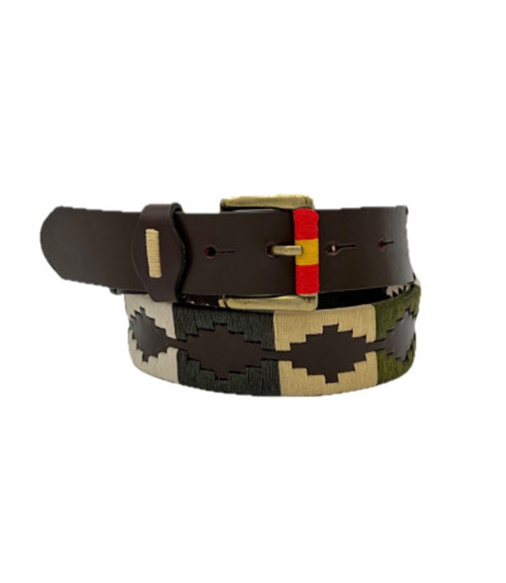 Cinto argentino bordado, confeccionado em couro marrom de alta qualidade. Fivela dourada fosca a cor não desbota com o tempo. Decorado com vibrantes padrões de losangos argentinos. 100% feito à mão.