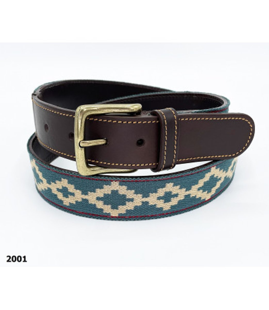 Cinto artesanal com base em couro bovino de alta qualidade. Fivela de bronze. Fita estilo pampa argentino, um design criado pelas culturas indígenas dos Pampas e da Patagônia.