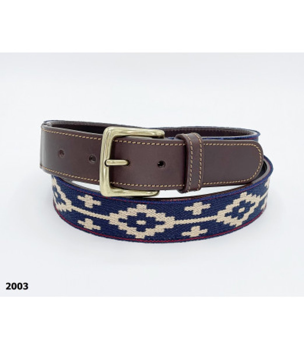 Cinto artesanal com base em couro bovino de alta qualidade. Fivela de bronze. Fita estilo pampa argentino, um design criado pelas culturas indígenas dos Pampas e da Patagônia.