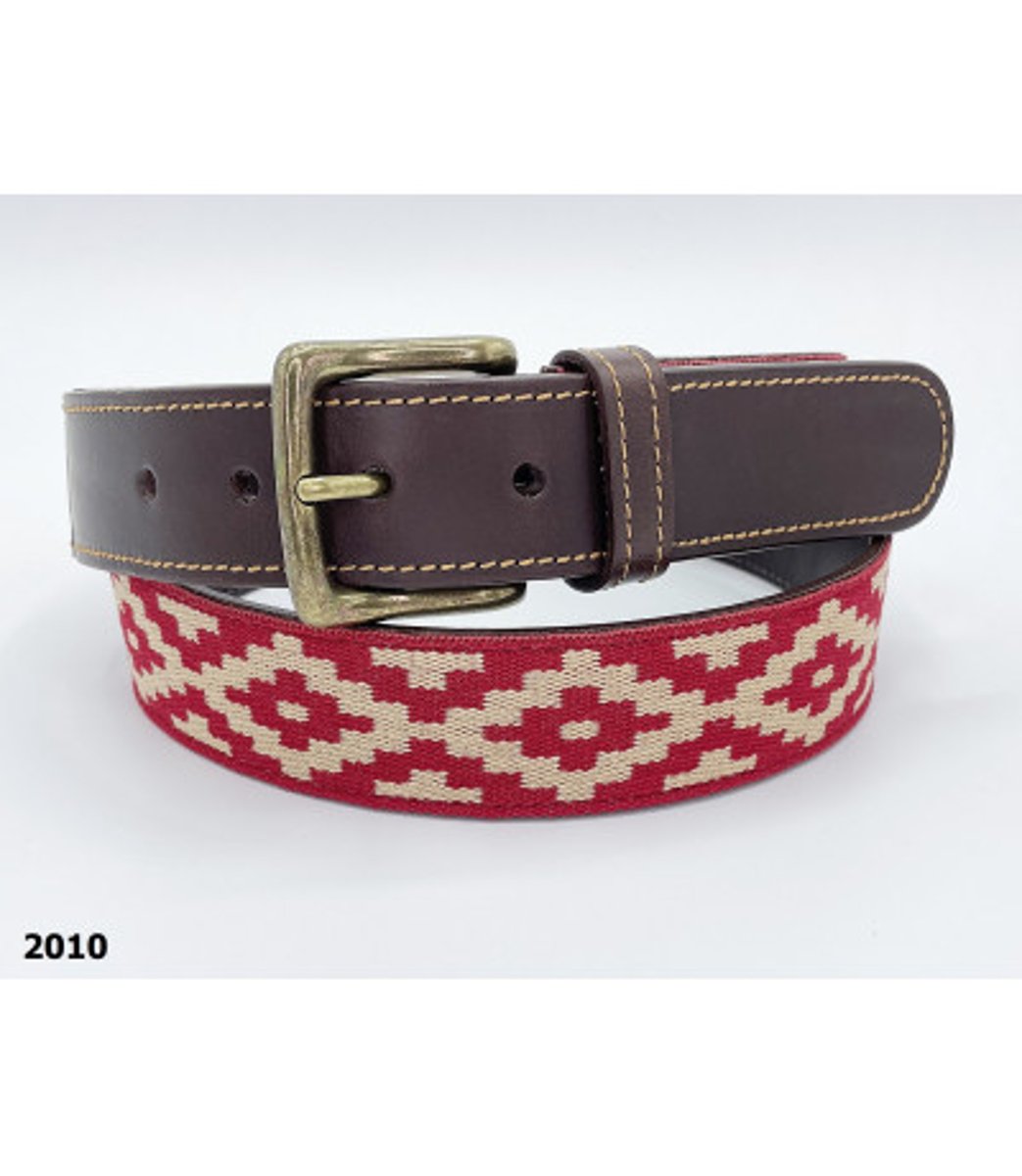 Cinto artesanal com base em couro bovino de alta qualidade. Fivela de bronze. Fita estilo pampa argentino, um design criado pelas culturas indígenas dos Pampas e da Patagônia.