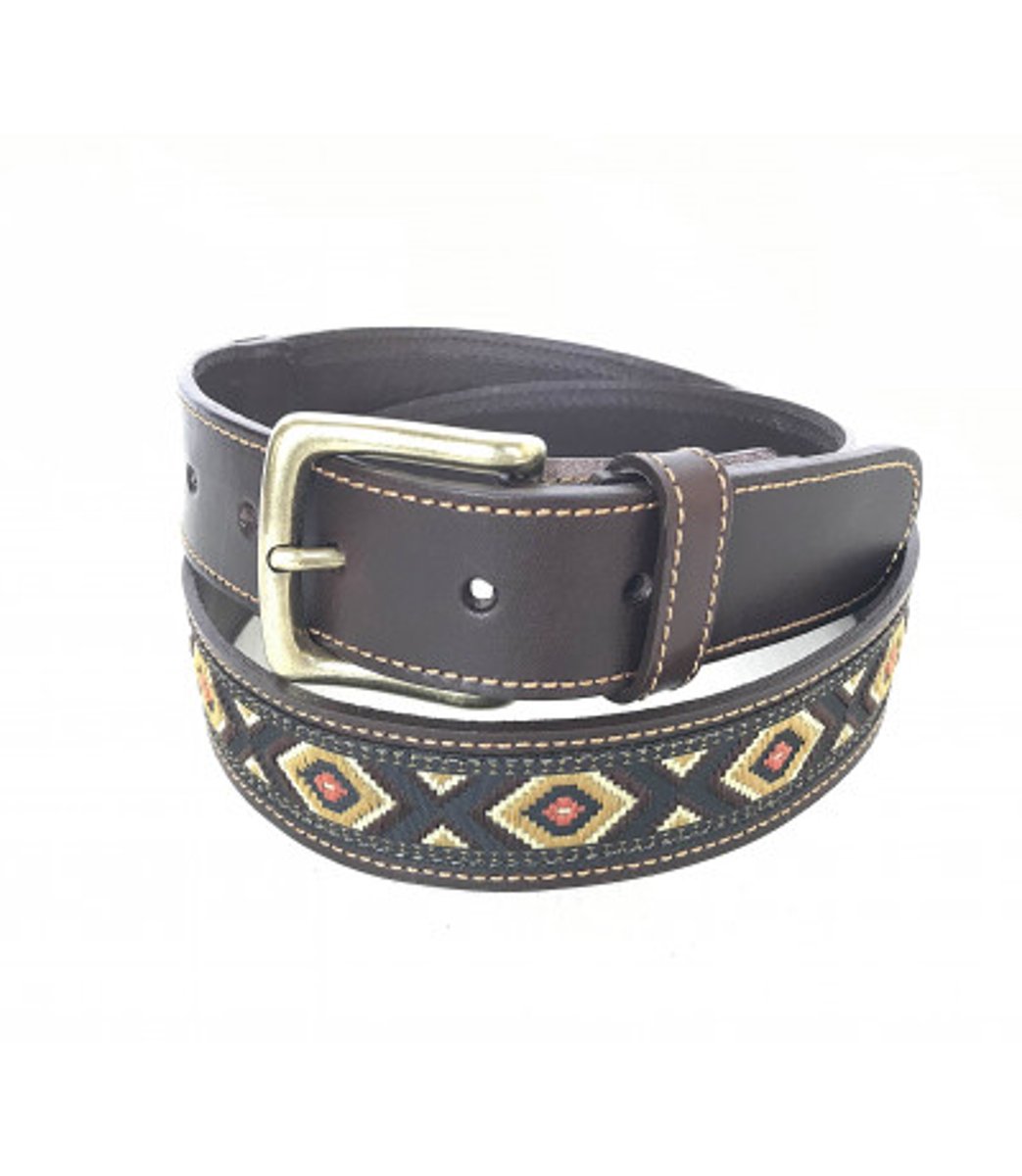 Cinto artesanal com base em couro bovino de alta qualidade. Fivela de bronze. Fita estilo pampa argentino, um design criado pelas culturas indígenas dos Pampas e da Patagônia.