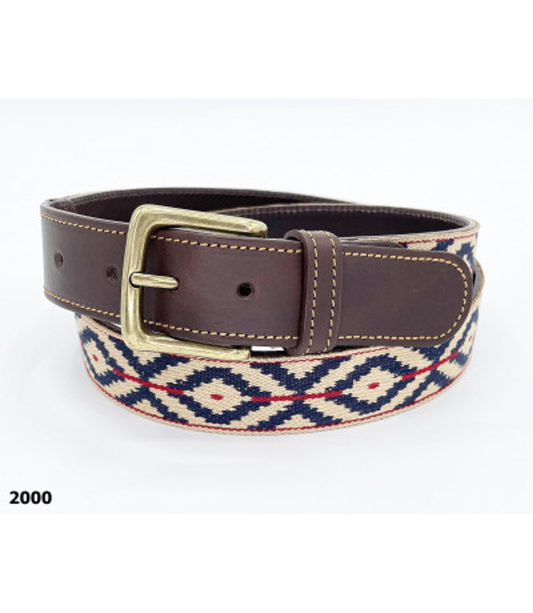 Cinto artesanal com base em couro bovino de alta qualidade. Fivela de bronze. Fita estilo pampa argentino, um design criado pelas culturas indígenas dos Pampas e da Patagônia.