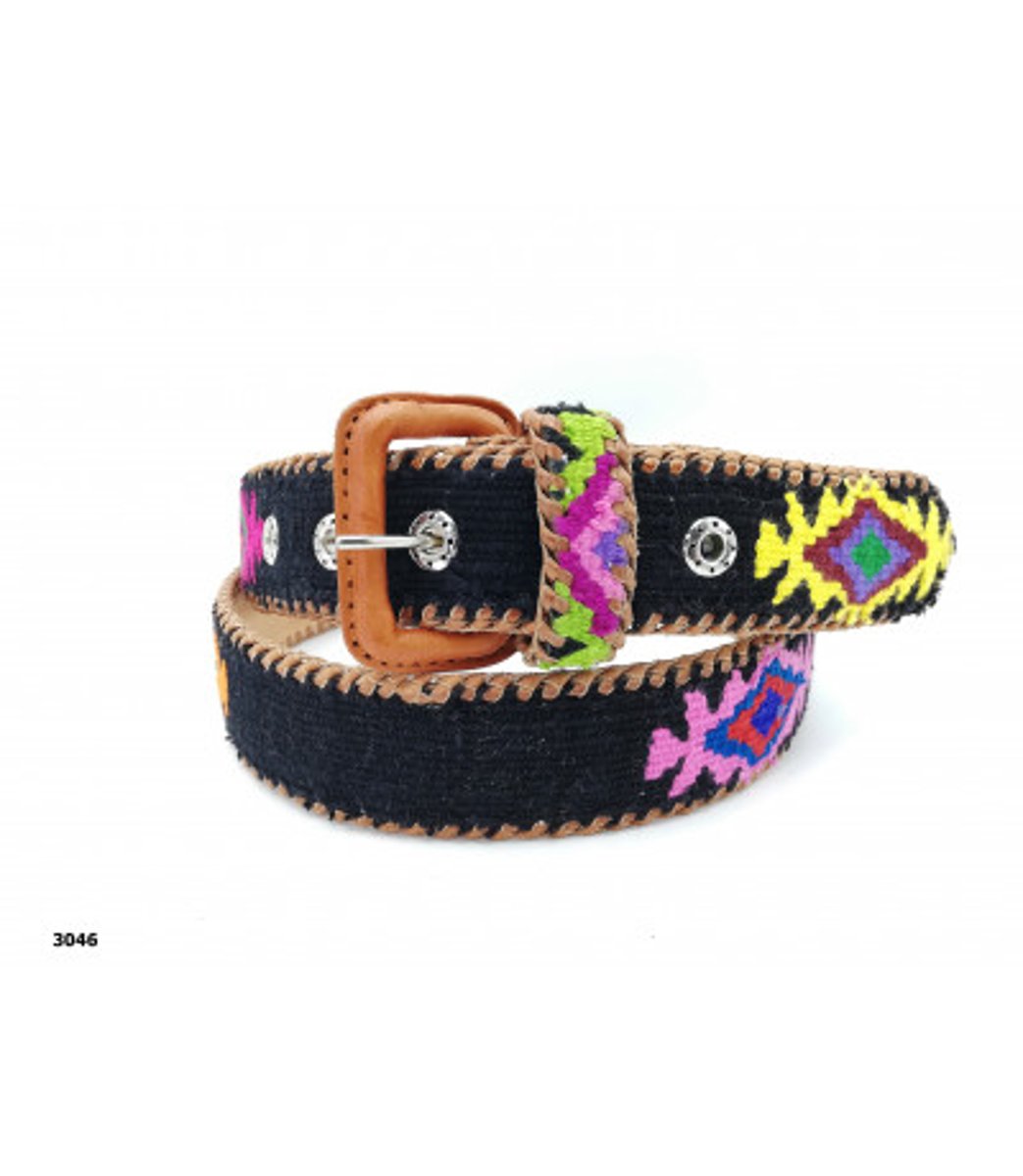 Cinto Naif, tecido à mão em teares com 100% algodão, acabamento em couro bovino, com bordas trançadas à mão e fivela revestida em couro. Cinto étnico.