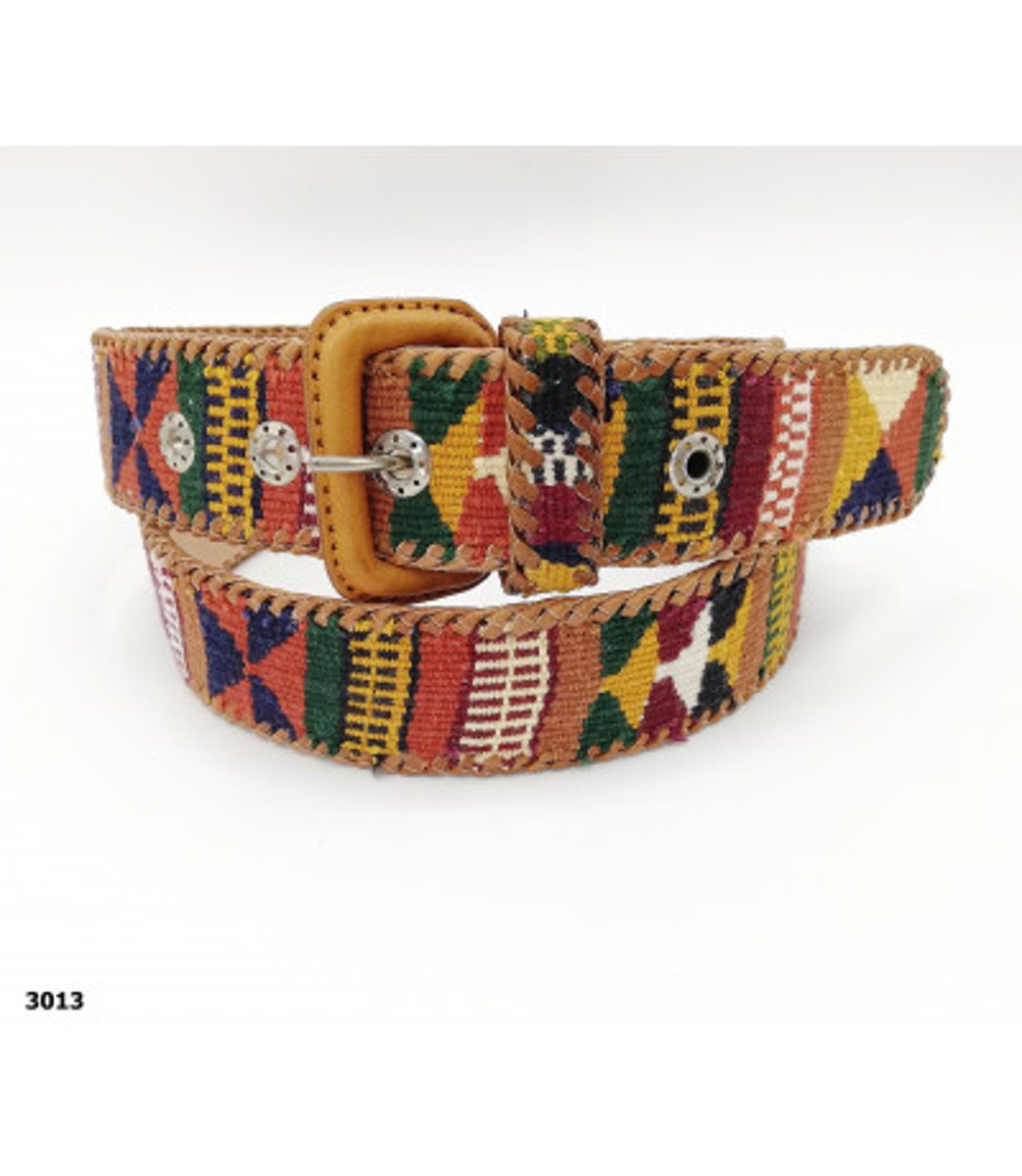 Cinto Naif, tecido à mão em teares com 100% algodão, acabamento em couro bovino, com bordas trançadas à mão e fivela revestida em couro. Cinto étnico.