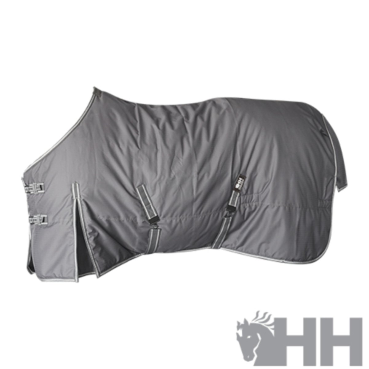 Manta impermeável e respirável com excelente relação custo-benefício. Especificações técnicas: - Tecido externo 600 Denier altamente durável, impermeável e respirável. - Sem acolchoamento interno, mas com forro de lã para proteção do cavalo. - Fechamento frontal no peito com fivelas. - Alças nos pés para colocação e fixação das correias. - Dobráveis nas mãos para facilitar a mobilidade do cavalo. - Aba para proteger a base da cauda.