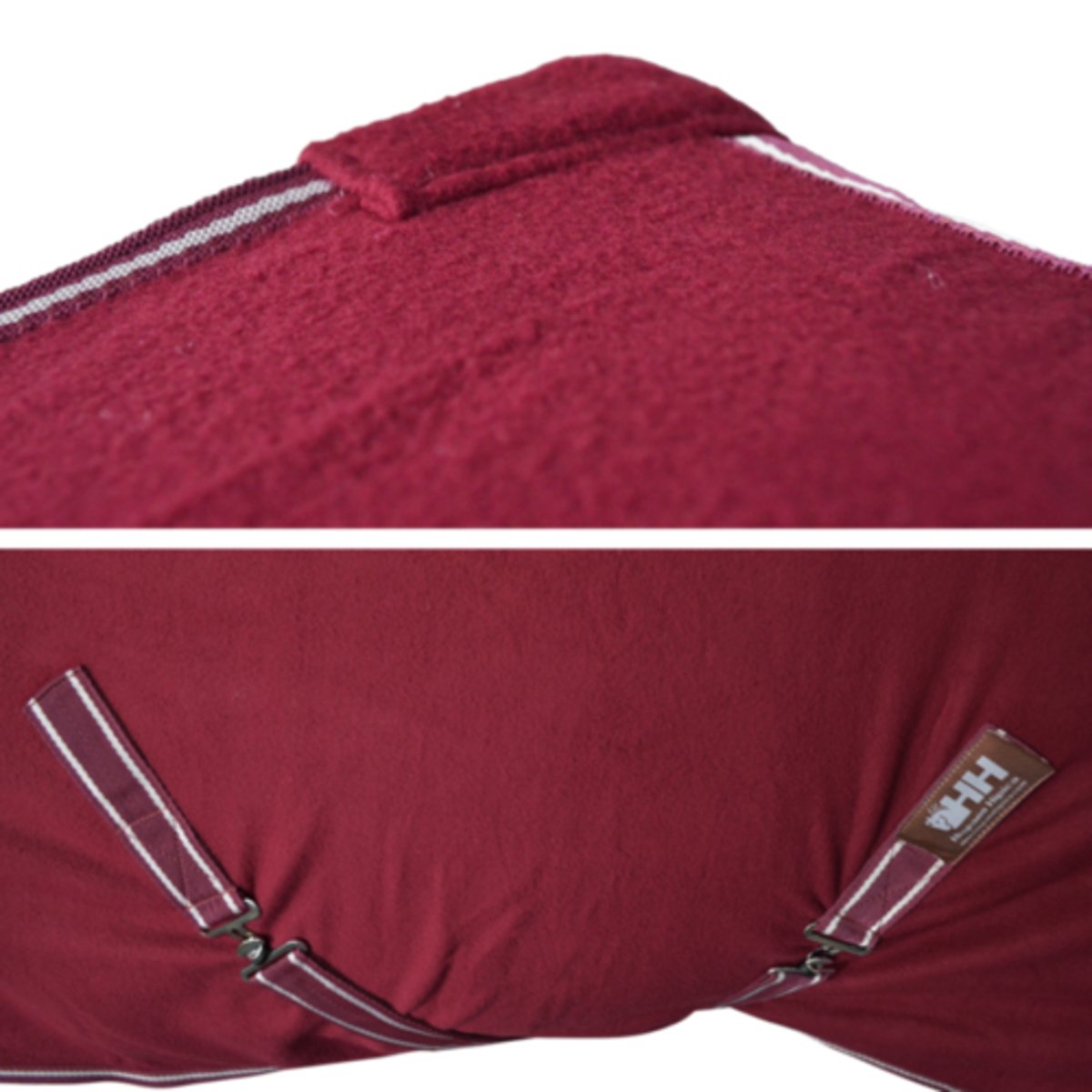 Manta de lã com sobrecilhas cruzadas, fecho no peito e cordão na cauda. Excelente custo-benefício e ideal para transportar, secar e proteger seu cavalo em climas temperados.