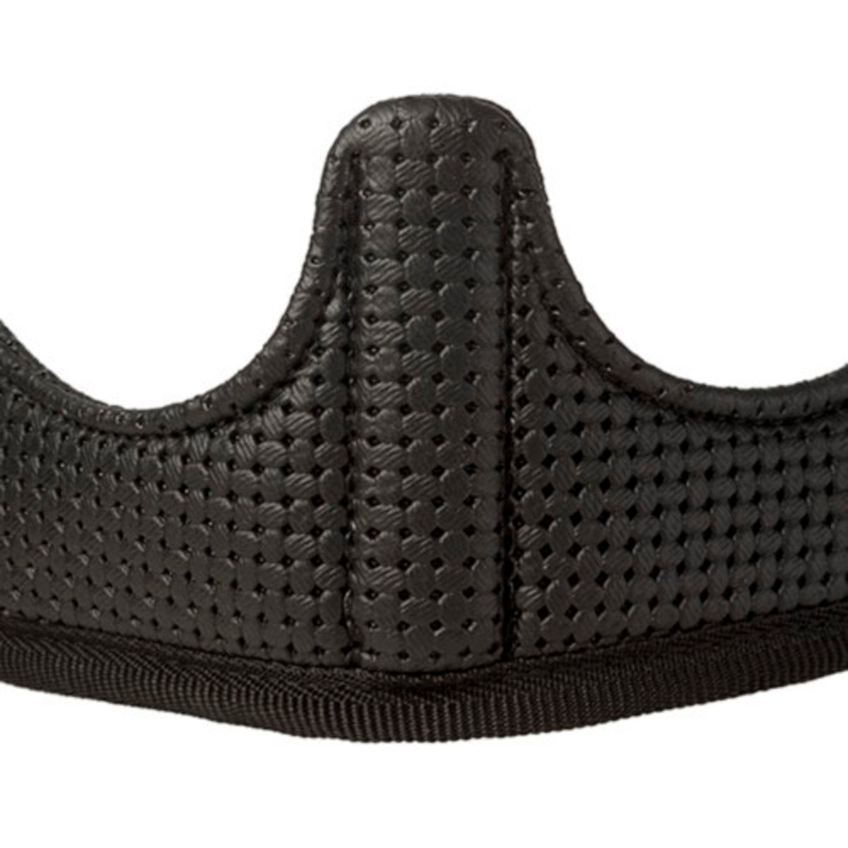 Coleira feita de PVC e nylon com interior acolchoado para maior conforto do cavalo. Na área da traqueia, possui uma placa metálica interna completamente indeformável para evitar que o cavalo engula ar.