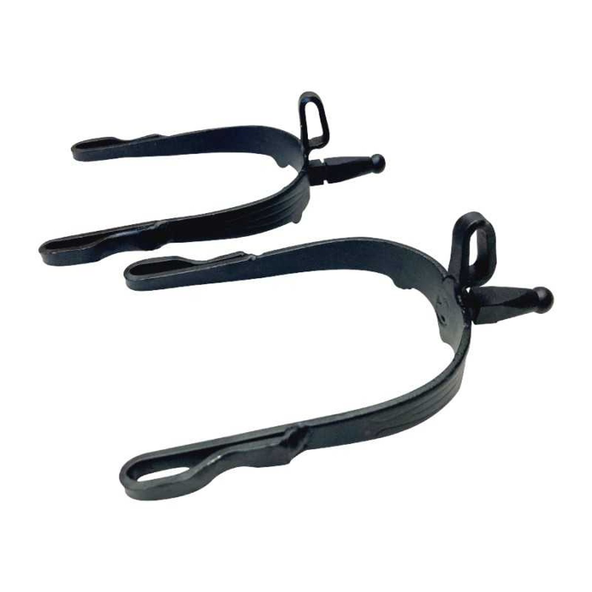 Uma espora usada na equitação tradicional da vaqueira espanhola, com acabamento pavonado e pua de contato.