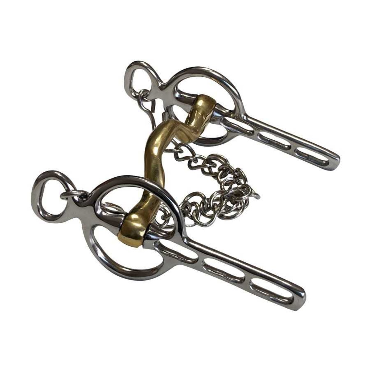 O freio Liverpool é usado na atrelagem. Caracteriza-se por suas duas argolas laterais e peças laterais retas com várias ranhuras para fixação das rédeas em diferentes posições. Este modelo é feito de aço inoxidável, possui bocal para a frente e banhado a ouro e três ranhuras laterais. Inclui uma corrente de aço inoxidável.