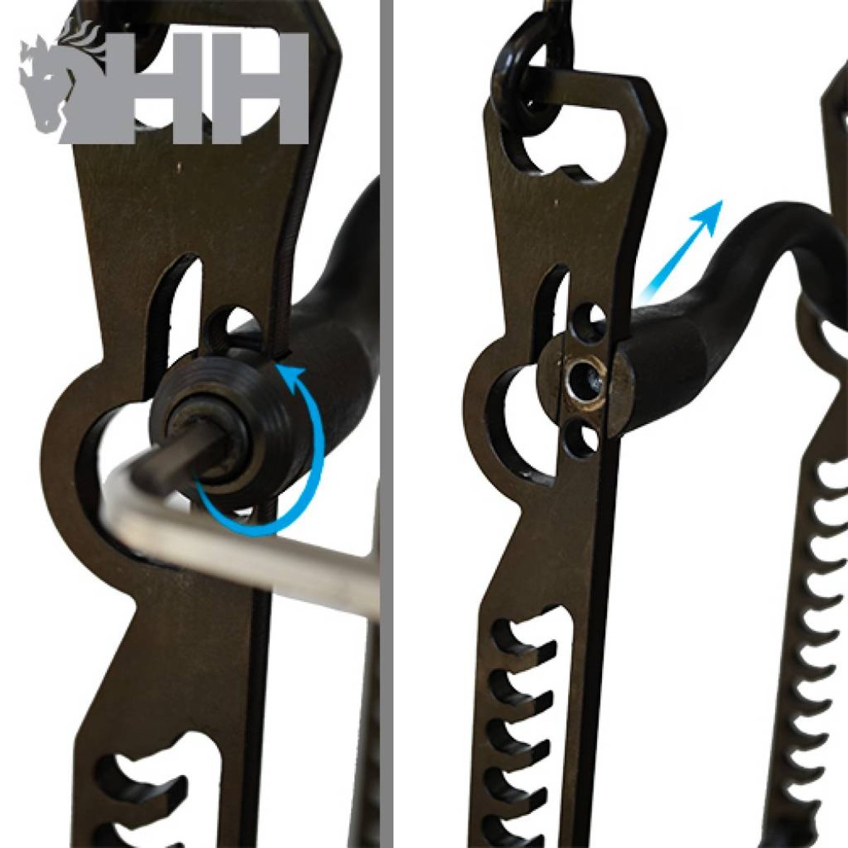 Freio Roldan Maestro permite ajustar o porta moços e caímbas em várias medidas .Vem equipado também com 4 embocaduras diferêntes para vir ao encontro das suas necessidades.