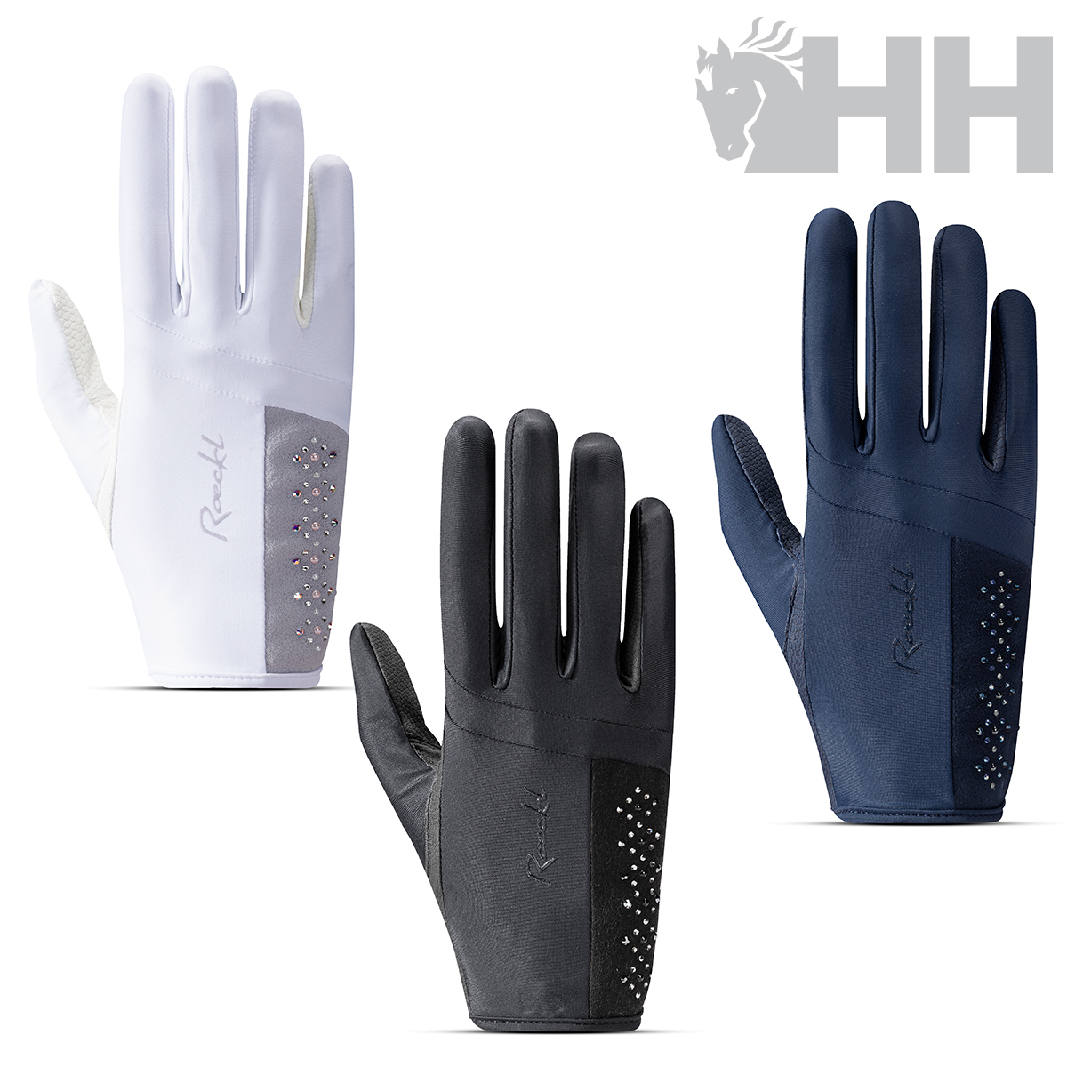 Um design que combina leveza e estilo. LILLINOE une a clareza de um design moderno com uma pegada responsiva e um ajuste leve e flexível para um contato preciso com as rédeas. Cristais Swarovski® na borda da empunhadura adicionam um toque moderno, feminino e discreto. Dorso da empunhadura: Force-Line com fio ECONYL© Palma da empunhadura: ROECK-GRIP®