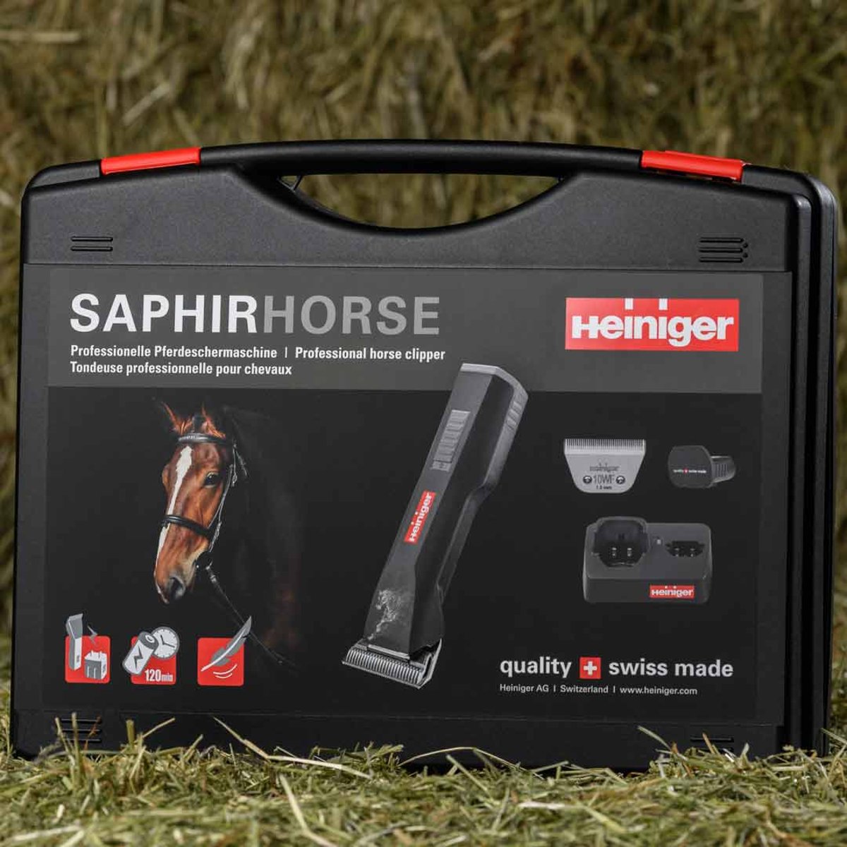A SAPHIRHORSE, com as novas lâminas largas 10WF e 15W, é a solução ideal para atender às necessidades de tosquia dos cavalos. Graças a estas lâminas largas, o corte de corpo inteiro também pode ser realizado de maneira mais eficiente. As novas lâminas também são compatíveis com todos os modelos Saphir existentes.