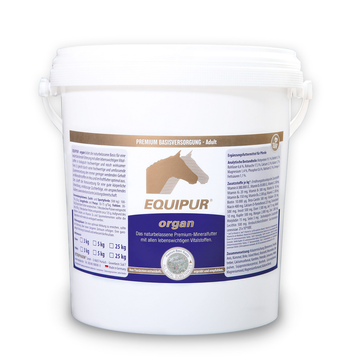A sua vasta e rica composição, compensa o reduzido teor de micronutrientes no feno e na ração. O complemento da alimentação diária com EQUIPUR-organ constitui, nos poldros, nos cavalos de criação e nos cavalos desportivos, uma condição essencial para o bom desenvolvimento corporal e alto sucesso reprodutivo, para uma imagem exterior sucesso reprodutivo, para uma imagem exterior adequada e para um desempenho constante e sempre disponivel.