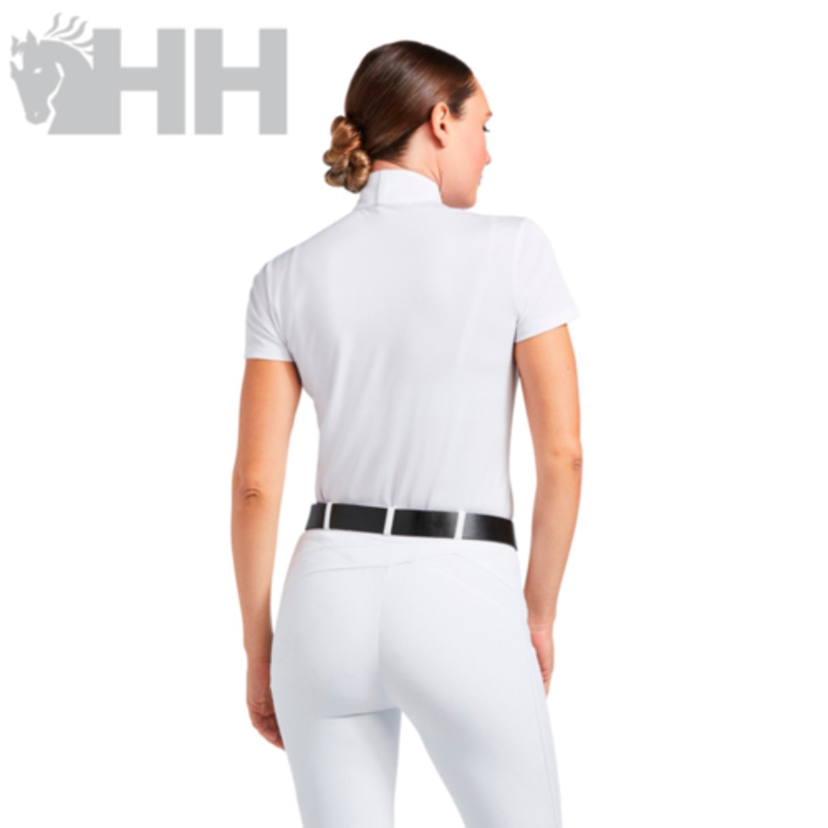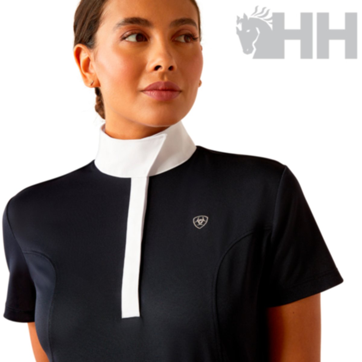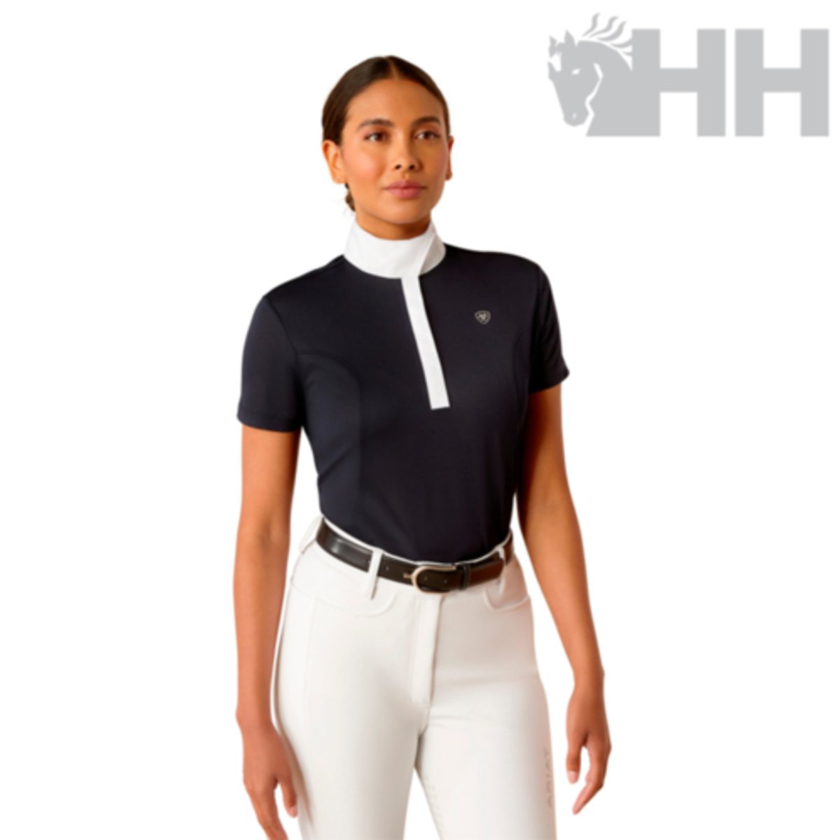 O polo Aptos é uma linha de competição projetado para conforto e flexibilidade durante as provas. Ideal para quem busca um visual clássico, ele possui gola de competição com dois fechos de pressão ocultos. Confeccionado em piqué elástico, mistura de polietileno e elastano, utilizando a tecnologia Ariat Moisture Movement.