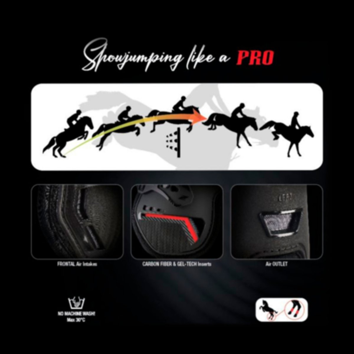 As proteções de Fetlock CARBON PRO COMPETITION representam a evolução das nossas proteções de salto mais conhecidas e vendidas, agora redesenhadas com um design completamente revisado para oferecer ao cavalo proteções ainda mais leves e respiráveis, além de uma área de proteção mais abrangente. Projetadas especificamente para fornecer suporte extra para cavalos com dificuldade de saltar com as patas traseiras, estas proteções são equipadas com elementos de fibra de carbono ainda mais resistentes e extensos, criando uma barreira térmica para proteger as articulações do cavalo do calor gerado pelo atrito e aumentando a resistência ao impacto.