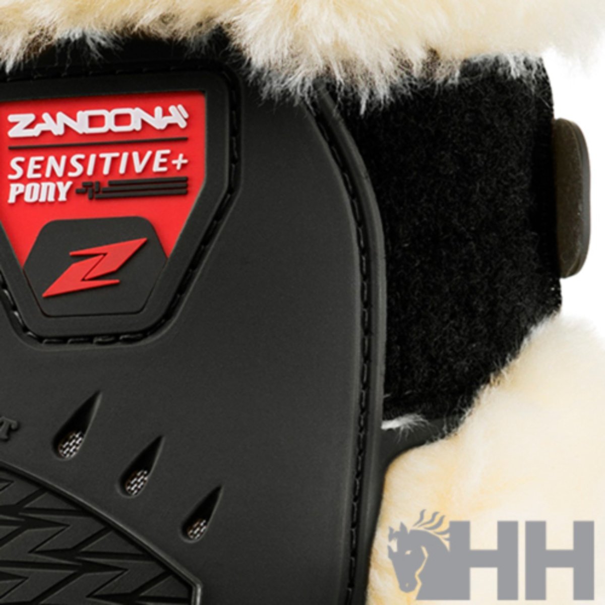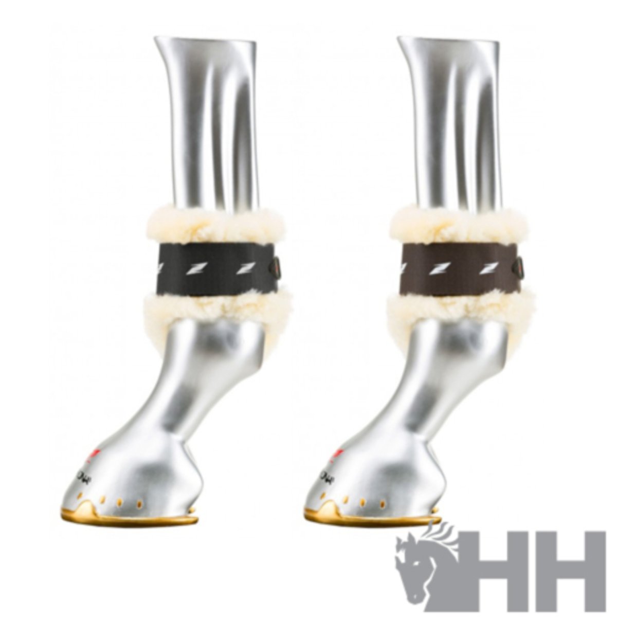 Estrutura externa em TPU. Respirável graças aos três orifícios de ventilação na parte inferior. Amortecedores Gel-Tech entre a lã e o TPU atuam como almofadas para maior conforto. A fibra de carbono sob a estrutura protege as articulações do atrito externo e melhora a resistência ao impacto. Possui tiras elásticas que fecham com segurança e podem ser liberadas rapidamente. Ajusta-se perfeitamente aos membros do pônei. O forro interno é feito de lã merino genuína hipoalergênica com termorregulação, ideal para peles sensíveis.