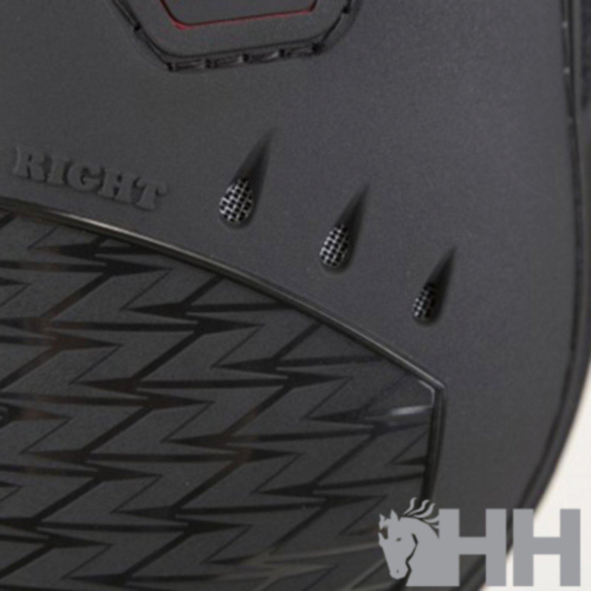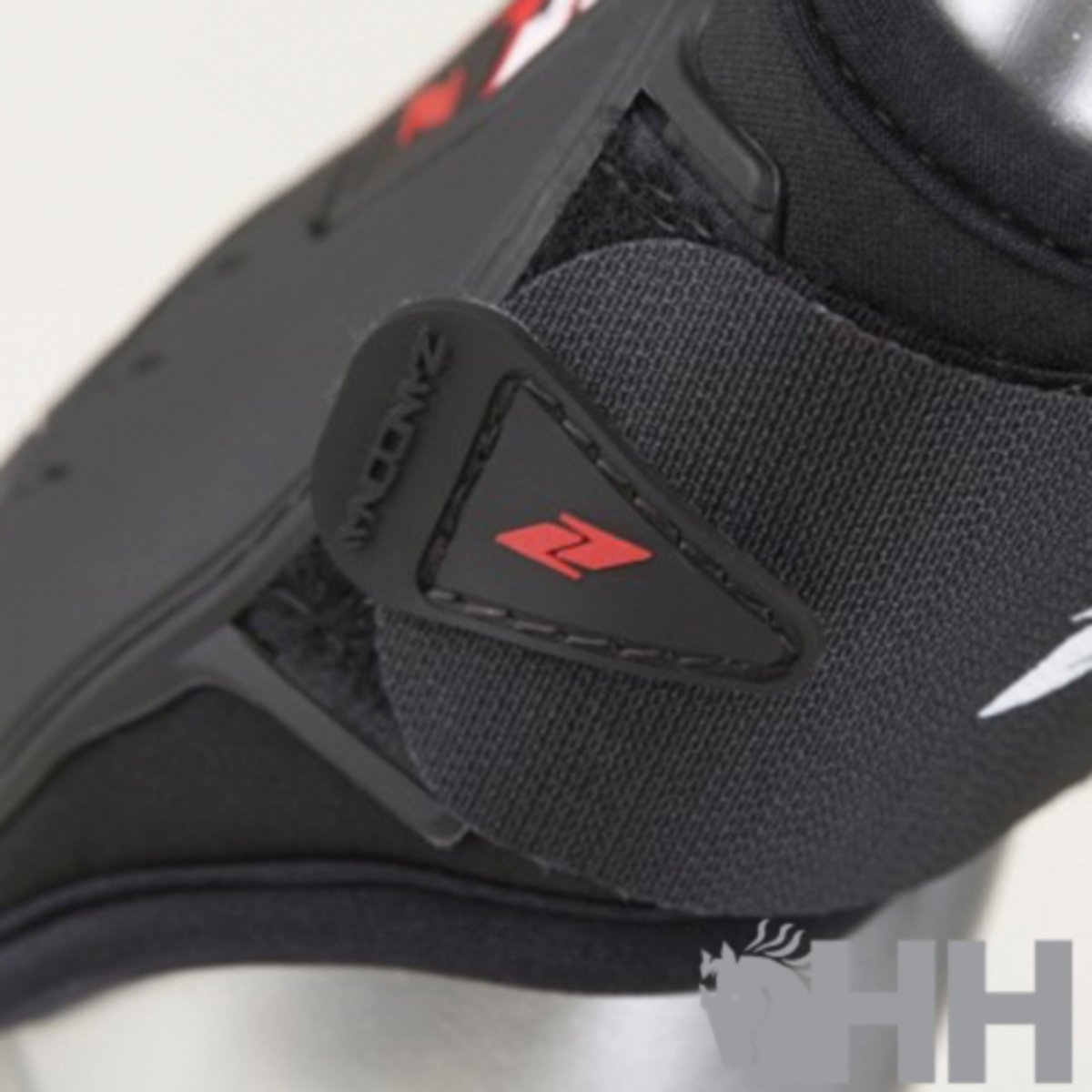 Estrutura externa em TPU. Respirável graças ao neoprene perfurado e aos três orifícios de ventilação na parte inferior. Amortecedores Gel-Tech entre o neoprene e o TPU atuam como almofadas para maior conforto. Possui tiras elásticas que fecham com segurança e podem ser liberadas rapidamente. Ajuste perfeito para o membro do pônei.