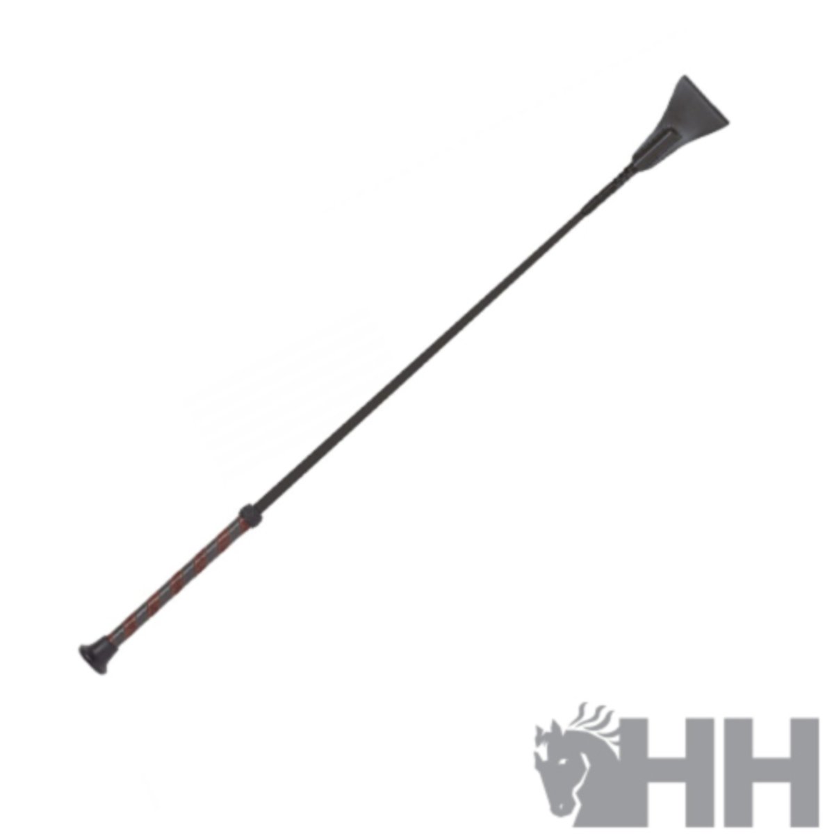 Stick com lingueta, corpo feito de fibra de vidro revestida com toque sedoso, cabo de couro sintético e coronha de plástico.