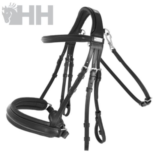 Cabeçada confeccionada em couro premium e fivelas de aço inoxidável.