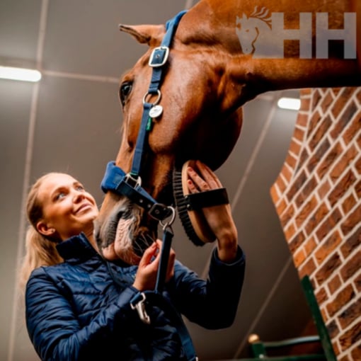 Projetado especificamente com uma alça de pescoço removível para facilitar a escovação. Dois clipes de pressão podem ser abertos e fechados rapidamente em ambos os lados para máximo acesso. O acolchoamento de lã aconchegante na peça de cabeça, na focinheira e nas bochechas evita atrito. Fivelas nos lados esquerdo e direito da cabeça do cavalo, bem como sob o queixo, oferecem máxima flexibilidade para diferentes tamanhos de cabeça.
