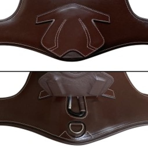 O design técnico inclui uma baveta integrada, que protege a zona abdominal do cavalo contra os impactos das ferraduras durante o salto. Possui elásticos triplos em ambos os lados, garantindo ajuste perfeito, durabilidade e segurança reforçada mesmo nas provas mais exigentes.
