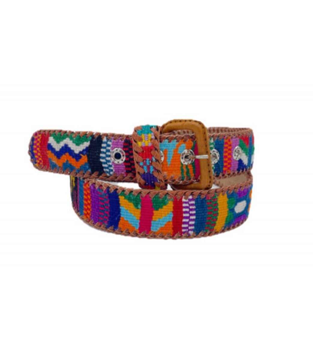 Cinto Naif, tecido à mão em teares com 100% algodão, acabamento em couro bovino, com bordas trançadas à mão e fivela revestida em couro. Cinto étnico.