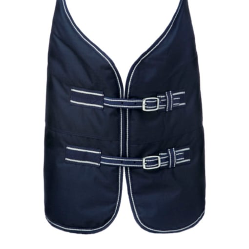 Manta acolchoada, impermeável e respirável com uma excelente relação preço/qualidade. Especificações técnicas: - Tecido externo 600 Denier altamente durável, impermeável e respirável. - Acolchoamento 300 GSM para proteger o cavalo de baixas temperaturas. - Forro interno de algodão natural para maior respirabilidade e conforto. - Fechamento frontal no peito com fivelas. - Passadores para as pernas para colocação e fixação das correias. - Pregas para as mãos para facilitar a mobilidade do cavalo. - Aba para proteger a base da cauda.