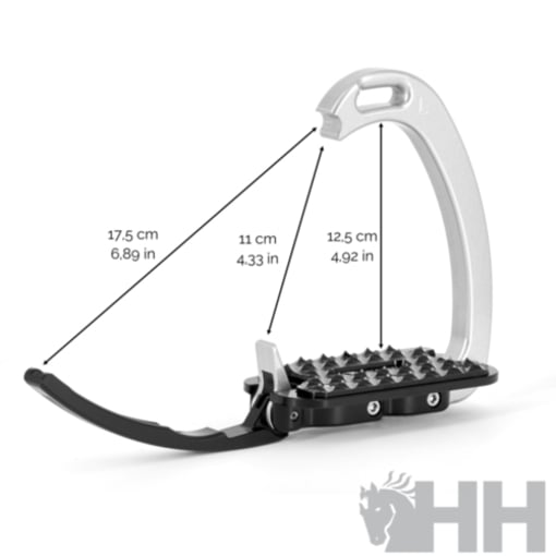 O coração do Estribo de Segurança Venice é um mecanismo exclusivo que permite que o pé seja liberado, se necessário, com o mínimo de força sobre a parte móvel, que então retorna automaticamente à sua posição original graças a uma mola instalada. A mola instalada permite que a parte móvel permaneça fechada durante o uso e se abra quando necessário, através de um apoio para os pés. A parte móvel foi projetada para retornar à sua posição fechada assim que o pé for liberado, de forma que nenhuma parte saliente permaneça, o que poderia ferir o cavaleiro e/ou o cavalo caso o cavalo caia ao solo. Estes estribos incorporam um ângulo de apoio de 2,5°. O design de aderência deste calcanhar é específico para saltos e é completo. Peso do estribo: 560 g. Todos os estribos Tech Stirrups são produzidos na Itália em suas próprias instalações, utilizando alumínio ERGAL moldado a frio para oferecer o mais alto nível de qualidade. Cada produto foi projetado com suas próprias características técnicas e funcionais, dando a cada cavaleiro a oportunidade de escolher os estribos mais adequados para sua disciplina e necessidades. Os estribos Tech são feitos inteiramente de metal, materiais não poluentes e recicláveis. Este modelo é totalmente aprovado pela FEI para competições.