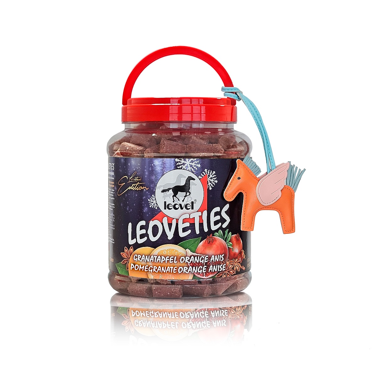 Com as Recompensas Romã/Laranja/Anis da Leovet, você pode recompensar o seu cavalo de forma saborosa e nutritiva, fortalecendo o vínculo entre vocês e proporcionando momentos de prazer durante o treinamento ou como gesto de carinho no dia a dia.